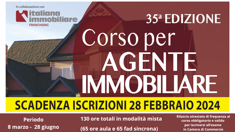 Il corso è stato riconosciuto dalla Regione Toscana con Decreto n. 25818 del 28/12/2022, pertanto al termine del corso sarà rilasciato un attestato di frequenza di “Formazione obbligatoria per Agente d’affari in mediazione – sezione immobiliare” valido su tutto il territorio nazionale per sostenere l’esame presso la propria Camera di Commercio di riferimento (della propria provincia di residenza o del proprio domicilio professionale).